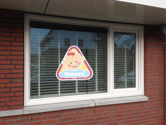 Met deze mooie geboortesticker laat je op een leuke manier zien dat er een meisje geboren is. Op de geboortesticker staat een driehoek met een meisje afgebeeld met daarbij de naam van het pasgeboren meisje in een wolkje.